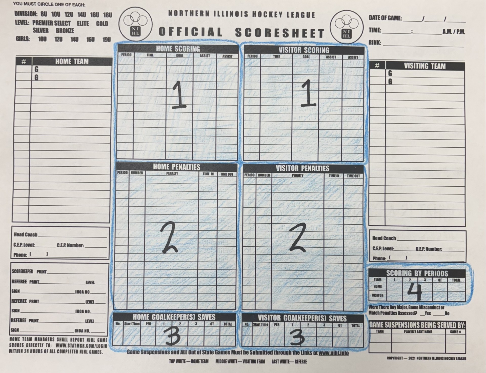 - "Home Penalties" & "Visitor Penalties"... Record all penalties taken by both teams