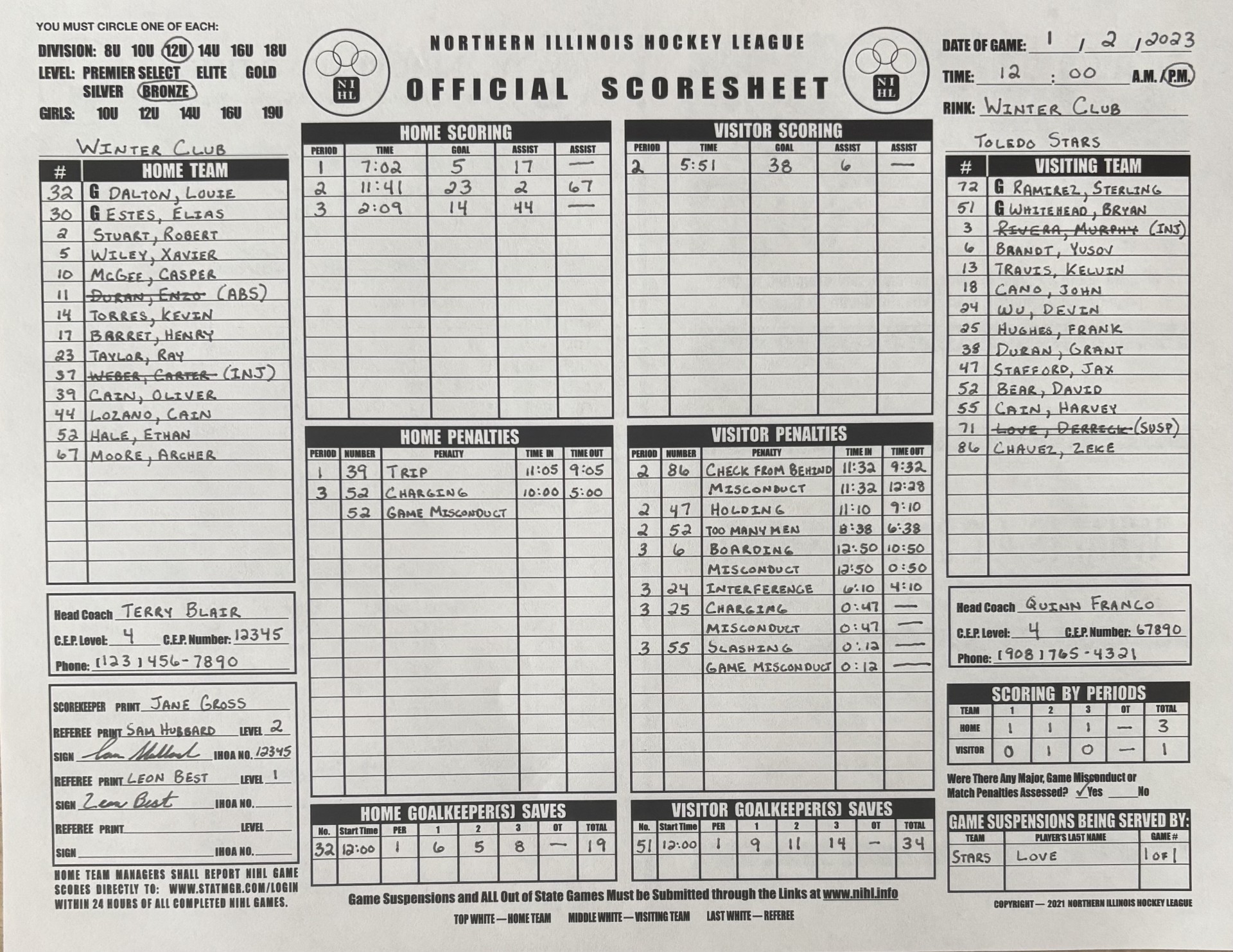 - Verify the player who took the penalty is rostered on the scoresheet.